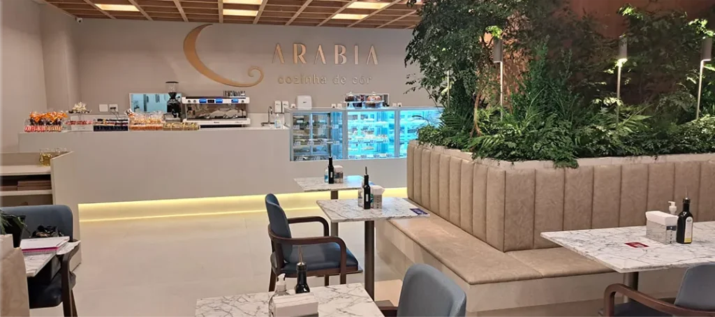Refeições leves e pratos icônicos em ambiente acolhedor.